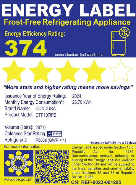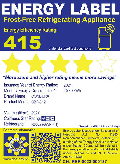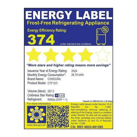 Condura 9.5 Cu.Ft. No Frost Auto Defrost Inverter, Metallic Gray CNF-271i (Class C)