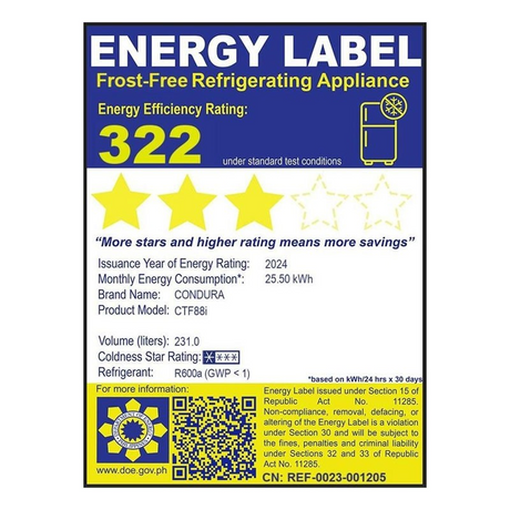 Condura 8.5 Cu. Ft. Two-Door Direct Cool Manual Defrost Inverter Refrigerator, CTD800MNI-A (Class A)